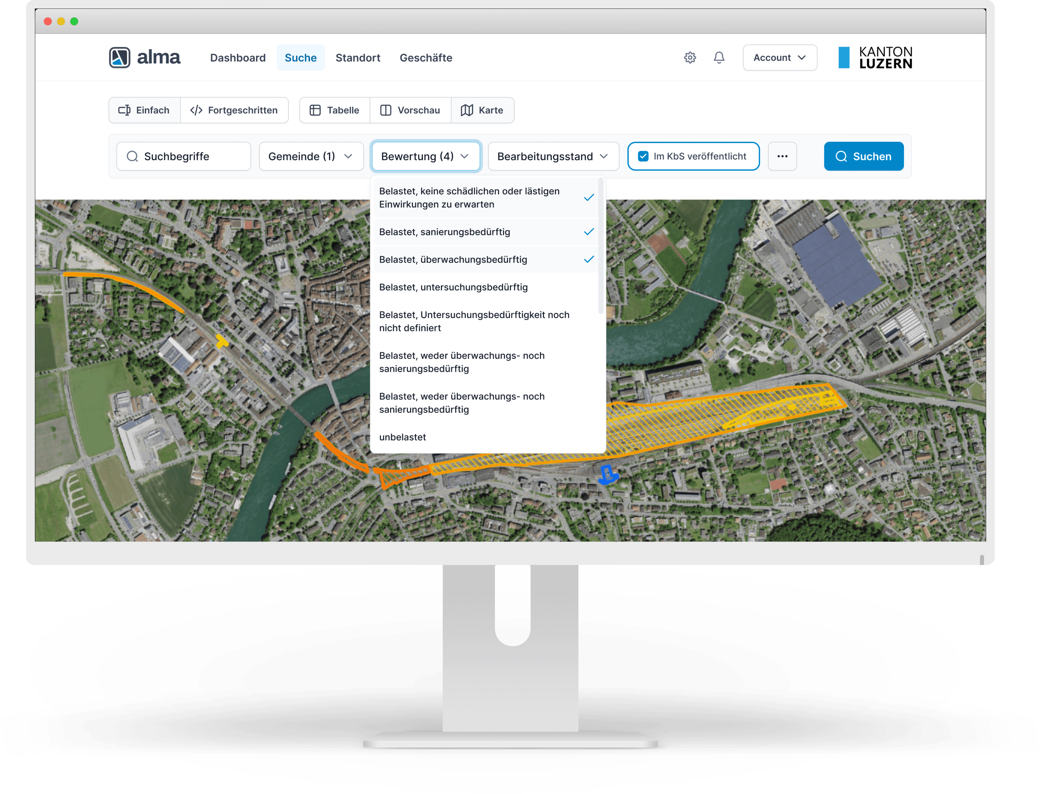 Das Bundesgesetz über den Umwelt­schutz verpflichtet die Schweizer Kantone und Bundesstellen, einen öffentlich zugänglichen Kataster der belasteten Standorte (KbS) zu erstellen. geOps entwickelt seit über 20 Jahren Software für die Erstellung und Führung des KbS in der Schweiz. Mit alma bieten wir eine Software, die sämtliche Aspekte in diesem Aufgabenbereich abdeckt.